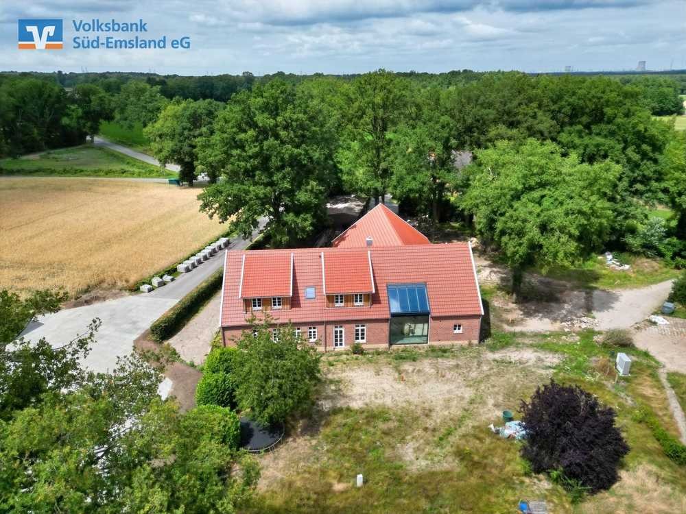 Inmitten einer ländlichen Idylle, nur wenige Minuten vom Ortskern Emsbüren entfernt, präsentiert sich dieses außergewöhnliche Anwesen mit Charme, Geschichte und Potenzial. Auf einem parkähnlichen Grundstück mit altem Eichenbestand entstand durch aufwendige Sanierung nach KfW-70-Standard ein hochwertiges Landhaus mit Einliegerwohnung , das modernes Wohnen mit ländlichem Flair perfekt vereint.