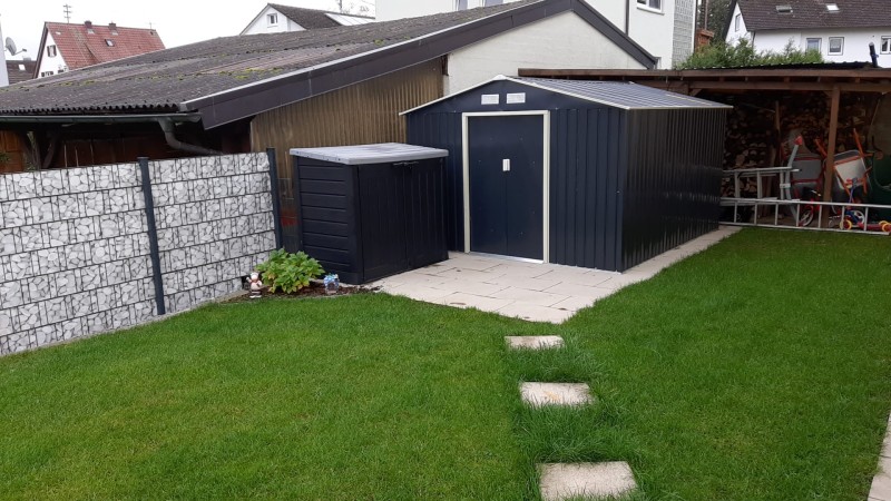 ✅ Eigener Gartenanteil ca. 123 qm (im Grundbuch eingetragen), Gerätehaus und zusätzliche Überdachung für Brennholz etc.