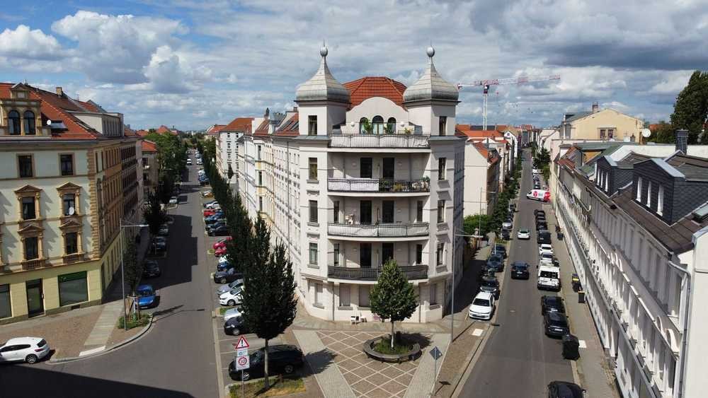 In dem denkmalgeschützten, repräsentativen Wohn- und Geschäftshaus, das sich unbestritten als erstes Haus am Platz bezeichnen lässt und 1908 durch den Privatinvestor Moritz Arras erbaut wurde, entstanden nach umfänglicher Sanierung auf vier Etagen plus Dachgeschoss 14 Wohnungen in einer Größe von 64 bis 108 m2.