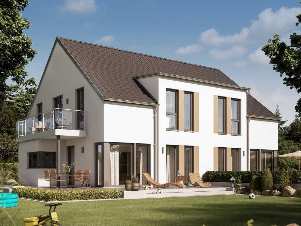 Das architektonisch ansprechende Mehrgenerationenhaus besticht mit einem zweigeschossigen Design, das im Obergeschoss alle Räume optimal nutzbar macht. Der zweigeschossige Rechteckerker verleiht dem Haus eine einladende und moderne Note. Die Kinderzimmer im Obergeschoss überzeugen mit direktem Zugang zum Balkon.
