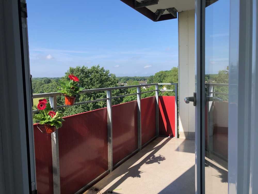 Die Wohnung liegt im 8. Stock und ist mit dem Fahrstuhl bequem zu erreichen. Von dem Laubengang geht es dann direkt in die Wohnung.