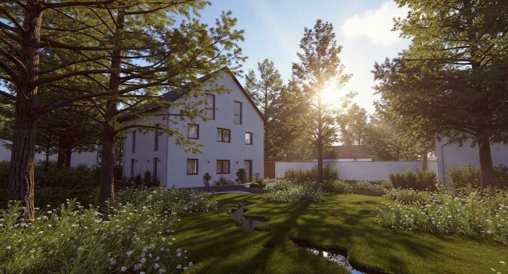 Die durchdachte Architektur der Doppelhaushälfte nutzt die Grundstücksfläche effizient und bietet ein komfortables Wohnkonzept für Familien. Im Erdgeschoss bildet die offene Wohnküche mit angrenzendem Wohnbereich das Herzstück des Hauses. Ergänzt wird dieser Bereich durch ein Gästebad sowie einen funktionalen Hauswirtschaftsraum. Das Obergeschoss ist für die Kinder vorgesehen und bietet zwei geräumige Zimmer sowie ein großes Badezimmer mit Badewanne. Der private Elternbereich im Dachgeschoss verfügt über ein großzügiges Schlafzimmer mit eigenem Ankleideraum und Badezimmer.