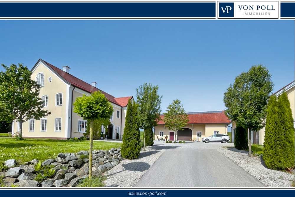 Das im traditionellen Landhausstil erbaute Herrenhaus wirkt gleichermaßen repräsentativ wie einladend. Klare Linien, liebevolle Details wie die klassische Dachform und hochwertig verputzte Fassaden fügen sich zu einer harmonischen Gesamtarchitektur. Trotz seiner zeitlosen Erscheinung wurde es erst vor wenigen Jahren errichtet – mit hohem Qualitätsanspruch und Liebe zum Detail. Im Inneren dominieren helle, großzügige Räume mit beeindruckenden Deckenhöhen und offenen Sichtachsen. Der lichtdurchflutete Wohnbereich mit elegantem Kamin bildet das Herzstück – ein Ort zum Ankommen, Entspannen und Zusammenkommen. Hochwertige Holzdielen, Natursteinböden und edle Materialien sorgen für eine ruhige, warme Wohnatmosphäre.