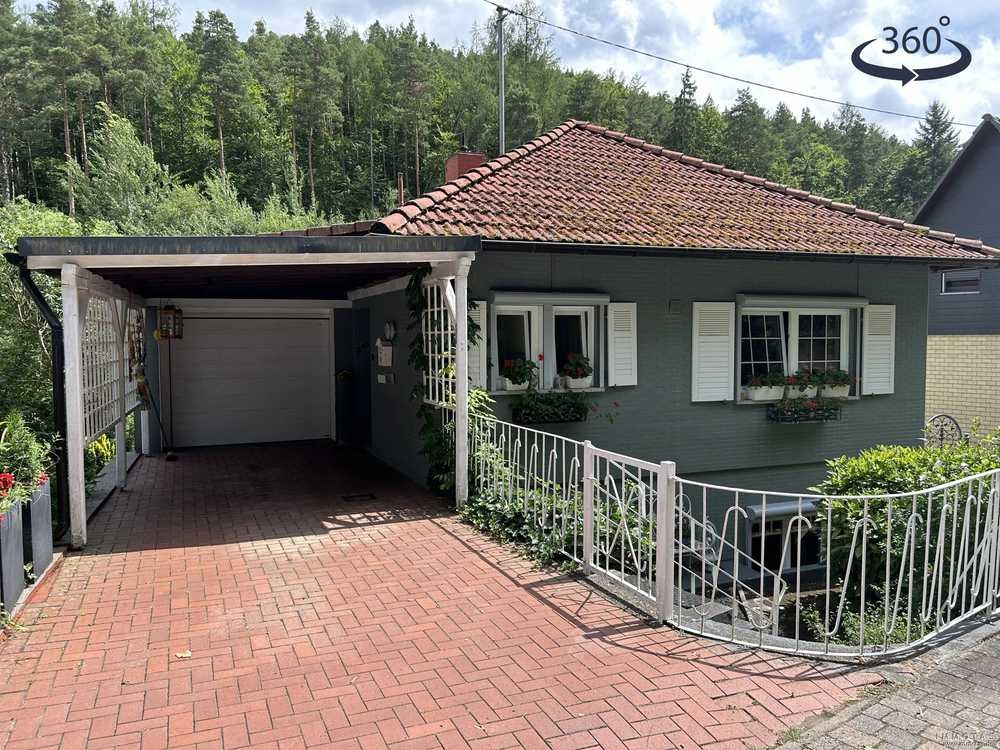 Abgerundet wird das Angebot durch eine Garage mit einem davor errichteten Carport sowie einer zusätzlichen Stellplatzmöglichkeit im Freien vor dem Carport. Der Außenbereich mit Terrasse und dem außergewöhnlichen, an den Wald angrenzenden Garten, bietet viel Raum zur Erholung im Grünen.