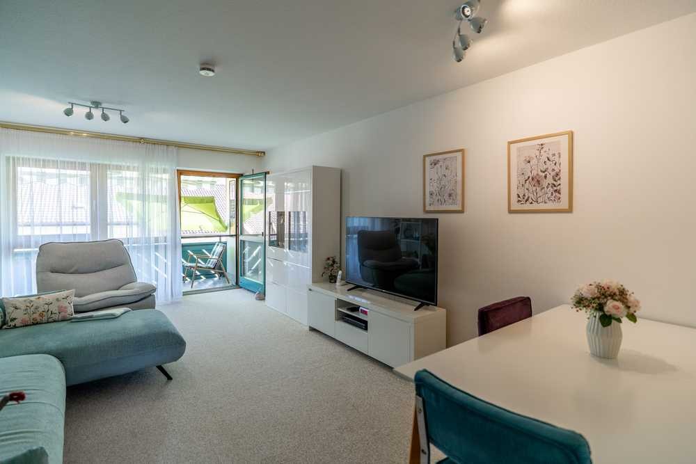 Zur Wohnung gehört einca. 3,76 Meter breiter Balkon mit einer ebenso breiten neuwertigen Markise, auf dem es sich wunderbar vom Alltag erholen lässt und man die Ruhe und den Bergblick geniessen kann.