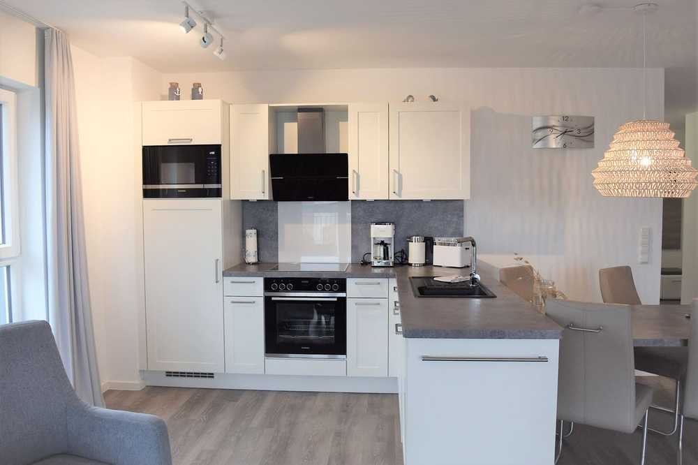 Zwei komfortable Schlafzimmer, ein großzügiger Wohn- und Essbereich mit moderner Einbauküche sowie ein stilvolles Wellnessbad schaffen eine Wohlfühloase für entspannte Urlaubstage.