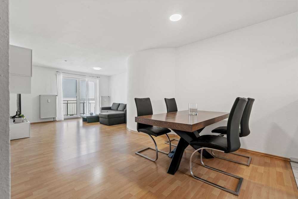 Das Herzstück der Wohnung bildet der großzügige Wohn-Essbereich, offen gestaltet und dennoch raffiniert getrennt: Eine stilvolle Rundung in der Architektur unterstreicht den Übergang zwischen diesen beiden Bereichen – ein charmantes Detail mit Charakter.