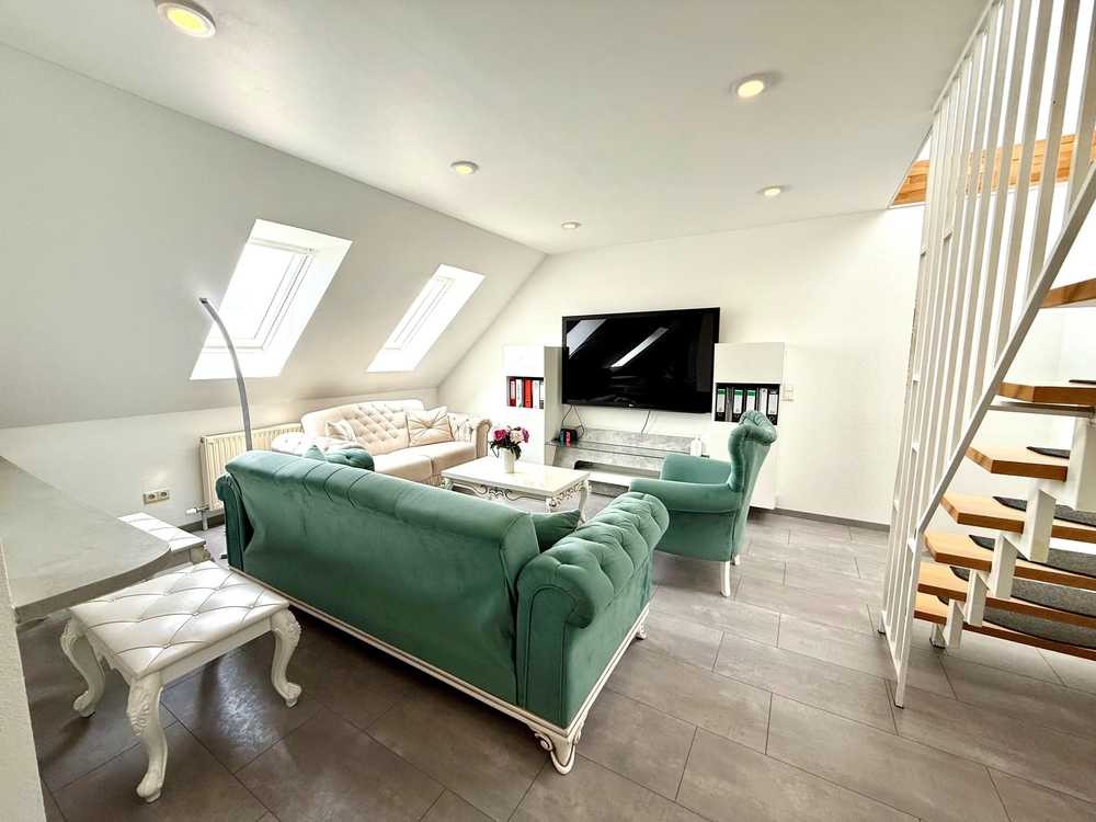 Diese moderne und gemütliche Wohnung in einem gepflegten Mehrfamilienhaus mit Gewerbeeinheiten verfügt über eine Wohnfläche von ca. 100 m² und verteilt sich auf zwei Wohlfühl-Ebenen im Dachgeschoss.