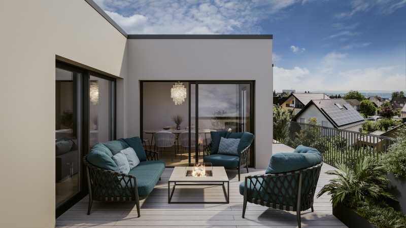 In einer traumhaft schönen Rheingau-Wohnlage in Oestrich-Winkel werden 2 moderne Mehrfamilienhäuser mit Tiefgarage gebaut. In jedem der 2 Häuser entstehen nur 8 Einheiten, davon jeweils zwei Wohnungen als Penthouse. Die Penthouse-Wohnungen haben großzügige Dachterrassen Richtung Rhein.