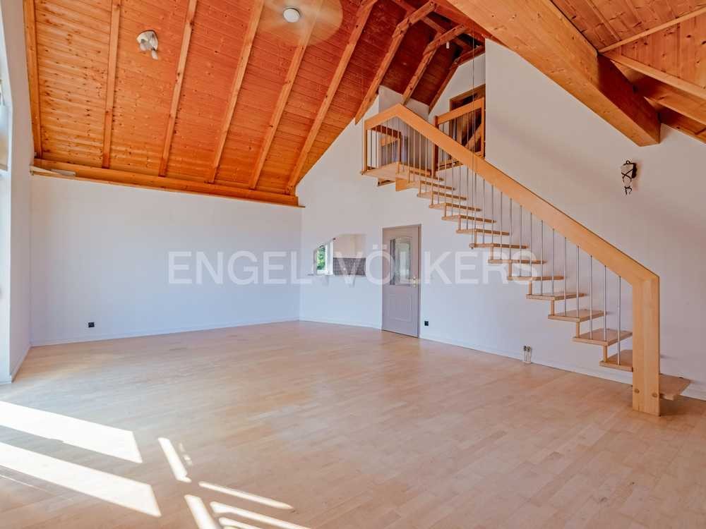 In der gesamten Wohnung wurde viel Wert auf Wohnkomfort gelegt – die Raumhöhe der Zimmer in der unteren Etage beginnt bei etwa 2,80 m und erstreckt sich im Wohn- und Essbereich auf beeindruckende 5,50 m. Hier befindet sich der über ein Raumthermostat steuerbare Deckenventilator, der sowohl für angenehm kühle als auch wohlig warme Tage sorgt. Ein weiterer Blickfang der Wohnung ist der Sichtdachstuhl, der sich durch beide Etagen zieht, sowie die raumhohe Fensterfront, die vom Wohn- und Essbereich auf den sonnigen Südwest-Balkon mit Weitblick führt. Massivholzdecken sorgen für eine wohnlich-warme Atmosphäre und laden Sie bereits beim Betreten dazu ein, sich ganz wie zuhause zu fühlen.