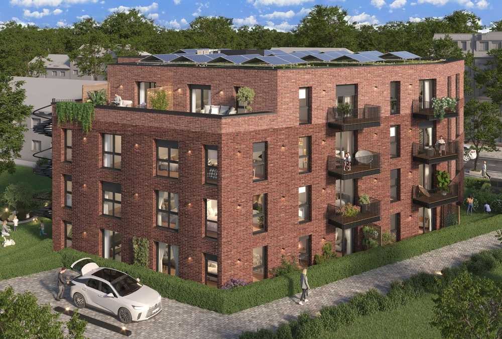 Große bodentiefe Fenster, elegante Balkone, ein Aufzug für den Komfort und clevere Technik wie eine Luft-Wärmepumpe, Photovoltaik und 3-fach-Verglasung machen Waldbek zu einem Zuhause mit Zukunft – für Menschen, die Licht lieben und Nachhaltigkeit schätzen.