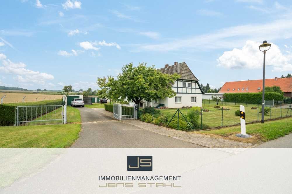 Dieses großzügige Wohnhaus aus dem Jahr 1935 liegt eingebettet in eine kleine, ruhige Siedlung – umgeben von Feldern, Natur und ländlicher Gelassenheit. Das über 2.448 m² große, komplett eingezäunte Grundstück bietet viel Platz zum Leben, Gärtnern und Entspannen. Eine Garage und mehrere Nebengebäude ergänzen das Ensemble sinnvoll.