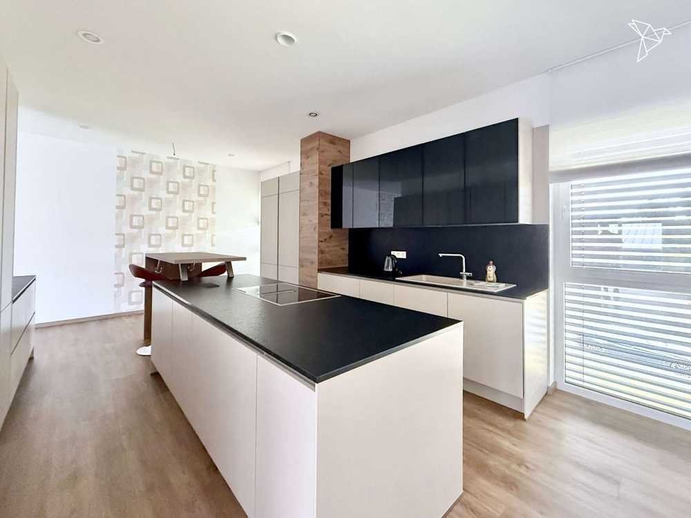 Das Herzstück bildet die luxuriöse Einbauküche mit eleganter Kochinsel (Einbau 2024). Hier trifft Design auf Funktionalität – perfekt für Genießer und Gastgeber. In sämtlichen Räumen sorgt eine Fußbodenheizung für angenehme Wärme, während dreifach-verglaste Fenster in Kombination mit elektrischen Rollläden effizienten Wärmeschutz und ein hohes Maß an Komfort garantieren.