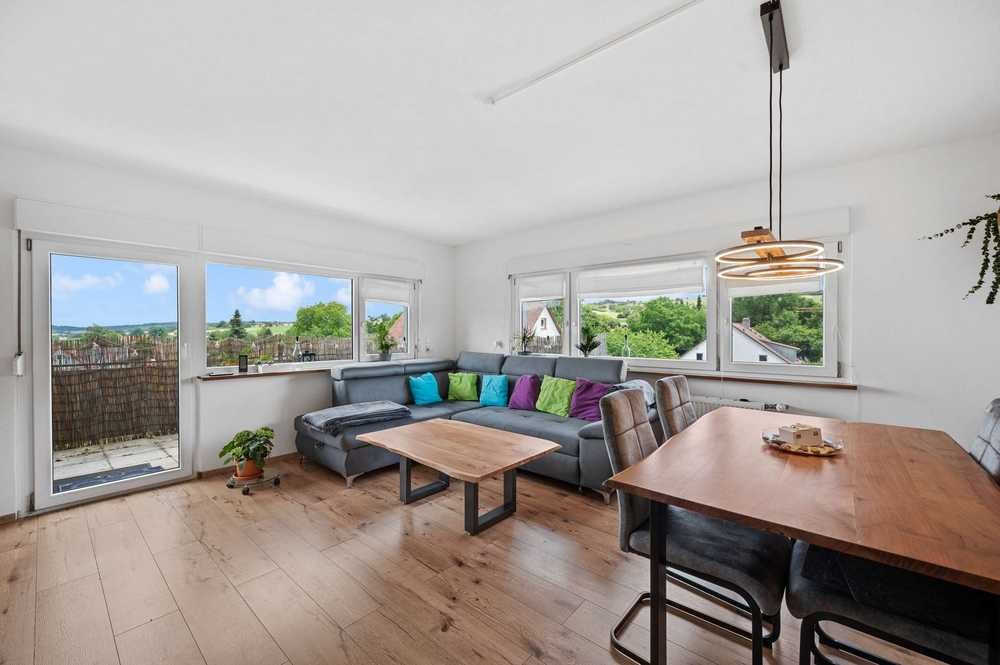 Das Herzstück der Wohnung ist der weitläufige Wohn- und Essbereich, der mit seiner offenen Fensterfront, dem wohnlichen Boden und dem Zugang zum Balkon begeistert. Der Balkon bietet dank seiner Außenbeleuchtung auch abends ein angenehmes Ambiente – und eröffnet Ihnen eine herrliche Weitsicht über die Dächer von Keltern.