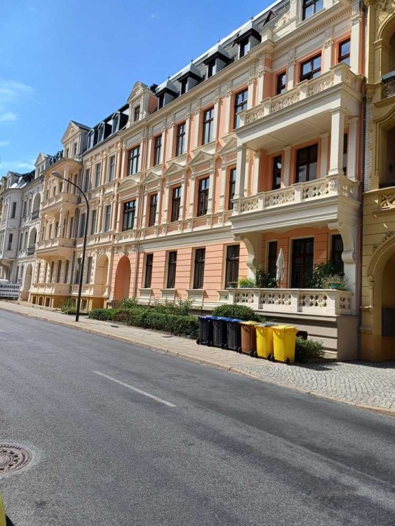 Die ETW befindet sich im Hochpaterre in einem denkmalgeschützten Haus in der Innenstadt von Görlitz. Die Wohnung ist nicht straßenseitig, sondern nur nach hinten ausgerichtet. Wir haben ein kleines Kinderzimmer, ein großes Schlafzimmer mit kleinem Balkon, eine mittige Küche mit Einbauküche und ein großes Wohnzimmer mit Balkon. Das Bad ist mit einer Badewanne ausgestattet mit Fenster. Ein WC ist separat. Daneben befindet sich eine Abstellkammer mit Fenster. Zur Wohnung gehört ein großer Keller.