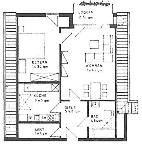 2 Raum Dachgeschosswohnung mit Balkon sowie PKW-Stellplatz in ordentlicher Wohnlage