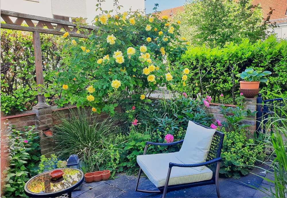 - Terrasse 2 (vorn) gemütlich und romantisch angelegt mit roter Ziegelmauer / Windschutz