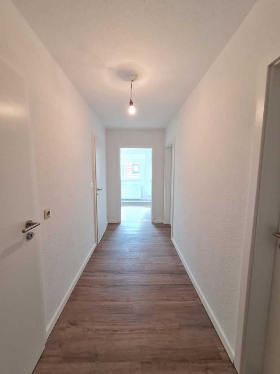 Die Wohnung wurde im Laufe des Jahres renoviert und dabei mit einem neuen Vinylboden ausgestattet. Die Wände sind mit Raufasertapete ausgestattet und weiß gestrichen.