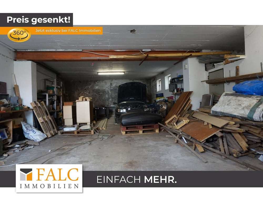 Neben dem Haus finden Sie eine ca. 100 m² große Garage mit einer Deckenhöhe von ca. 4 Metern.