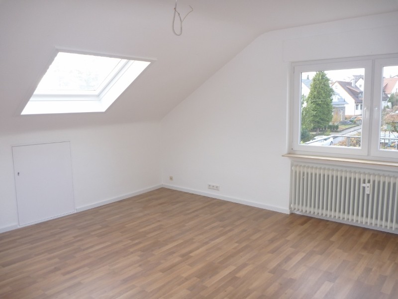 Helle Dachgeschosswohnung ( ca. 68 qm auf 110 qm Grundfläche) im freistehenden 4 Familienhaus in ruhiger Lage in Backnang. Nur wenige Gehminuten ins Zentrum oder keine 5 Minuten mit dem Auto- um sich im Plattenwald zu erholen.