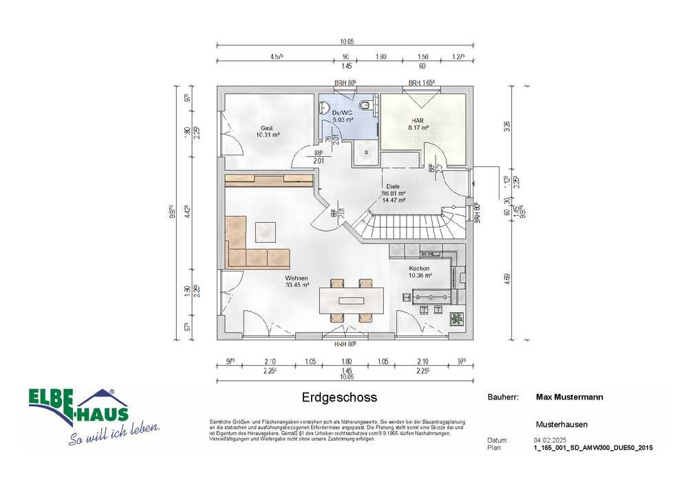 Dieses innovative Elbe-Haus® wird in massiver Bauweise von qualifiziertem Fachpersonal errichtet. Wir planen und projektieren nach Ihren Vorstellungen und Wünschen und somit ist wirklich jedes Haus einzigartig. Beachten Sie bitte, dass das abgebildete Haus lediglich ein Bebauungsbeispiel ist. Das Grundstück kann unter Berücksichtigung der örtlichen Bauvorschriften mit Ihrem Wunschhaus von Elbe-Haus® errichtet werden.