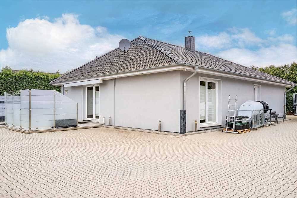 Der Bungalow, der ca. 2015 als Betriebsleiterwohnhaus erbaut wurde, verfügt über eine Wohnfläche von ca. 131 m² und ist auf einem großzügigen Grundstück von ca. 1.477 m² gelegen. Er ist in einem gepflegten Zustand, was ihn zu einer attraktiven Investition macht. Das Objekt verfügt über drei Zimmer, darunter zwei Schlafzimmer, ein großer Wohn- und Essbereich mit moderner Einbauküche, ein Tageslichtbad mit Badewanne und Dusche, ein Büro und ein Hauswirtschaftsraum; hier ist auch die Heizung untergebracht.