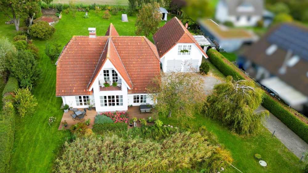 Abgerundet wird das Ensemble durch eine geräumige Doppelgarage sowie weitere Stellflächen auf dem Grundstück.