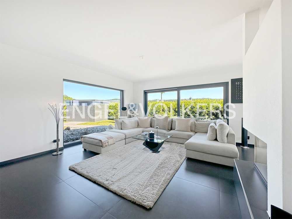 Die im Jahr 2017 nach KfW-55-Standard errichtete und 2025 energetisch auf den neusten Standard modernisierte, stilvolle Bungalow-Villa besticht durch ihre Großzügigkeit, klare Linien und eine moderne, luxuriöse Bauweise. Das gesamte Gebäude und alle Außenbereiche sind vollständig barrierefrei. Die großzügige Wohnfläche von 329 m² verteilt sich auf einen offenen Wohnbereich mit Wohnzimmer, zentral in der Raummitte gelegenen, dreiseitig verglasten Kaminofen, Esszimmer und eine sehr hochwertige Design-Küche. Weiterhin gibt es ein Schlafzimmer mit begehbarer Ankleide und großzügigem Bad, ein Kinderzimmer mit eigenem Bad, ein Arbeitszimmer, einen Hauswirtschaftsraum, ein Gästezimmer, eine Gäste-Toilette und einen großzügigen Eingangsbereich. Seitlich angebaut befindet sich eine direkt mit dem Gebäude verbundene große Garage, welche Platz für 3 PKW's, Werkstattbereich und Haustechnik bietet. Auf der großen, nach Süden ausgerichteten, nicht einsehbaren und teilweise mit einer elektrisch einstellbaren Pergola überdachten Terrasse, können Sie ungestört schöne Sommertage verbringen.
