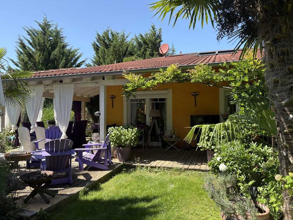 Ein absolutes Highlight ist der mediterran gestaltete Außenbereich mit Holzterrasse, lauschigen Sitzplätzen, liebevoll bepflanzten Wegen und dem geschwungenen Swimmingpool – eine Oase der Ruhe und Entspannung.
