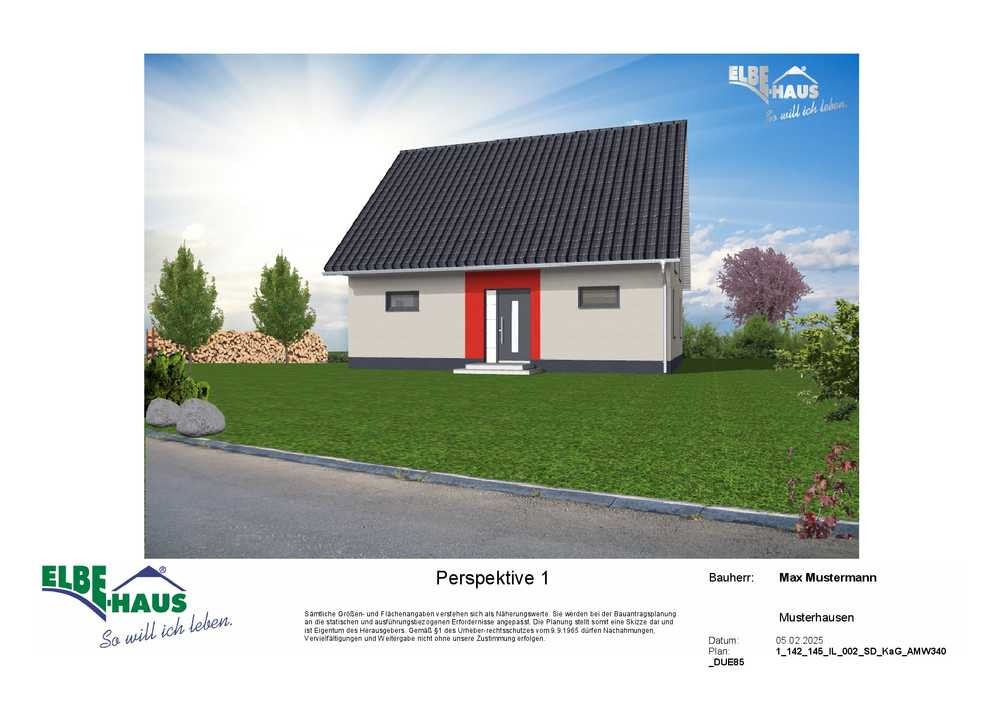 Dieses innovative Elbe-Haus® wird in massiver Bauweise von qualifiziertem Fachpersonal errichtet. Wir planen und projektieren nach Ihren Vorstellungen und Wünschen und somit ist wirklich jedes Haus einzigartig. Beachten Sie bitte, dass das abgebildete Haus lediglich ein Bebauungsbeispiel ist. Das Grundstück kann unter Berücksichtigung der örtlichen Bauvorschriften mit Ihrem Wunschhaus von Elbe-Haus® errichtet werden.