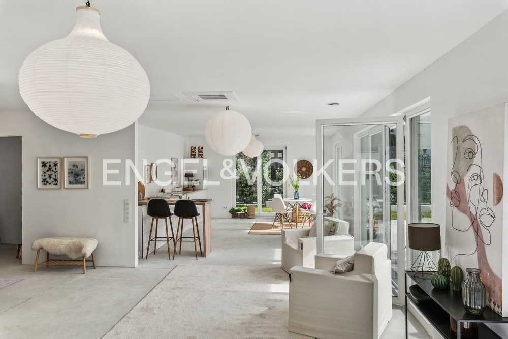 Diese technisch besonders hochwertige Neubauwohnung befindet sich in einem energieeffizienten Gebäude mit drei Parteien. Der aktuelle Ausbauzustand der Räume erlaubt Ihnen die individuelle Gestaltung der Böden, Türen, Sanitäranlagen und einer Einbauküche. Der Ausbau ist – mit Ausnahme der Küche – im Rahmen der vorgesehenen, hochwertigen Ausstattung im Kaufpreis enthalten. Die Wohnung wird schlüsselfertig übergeben, sodass Sie nach dem Einbau Ihrer individuellen Wunschküche direkt einziehen können. Der Schnitt der Wohnung ist gut durchdacht: Hinter einem Flur/Entrée empfängt Sie ein weitläufiger Wohn-/Essbereich mit offener Küche. Dieser Raum wird durch die große nach Südwesten ausgerichtete Terrasse, die auch zu den Seiten hin begehbar ist, erweitert und kann bei angenehmen Temperaturen draußen wie ein zusätzliches Wohn-/Esszimmer genutzt werden. Ein Teil der Terrasse ist durch den darüberliegenden Balkon überdacht und der gepflegte Rasen lädt zum Spielen und Entspannen ein. Die Aufteilung der Zimmer ist ideal, um in zwei Bereichen viel Privatsphäre zu genießen. Die Eltern sind mit Schlafzimmer, Ankleide und Bad durch den zentralen Flur von zwei weiteren Räumen inkl. Duschbad separiert. Die Zimmer zur Straße sind jeweils mit einem kleinen Balkon ausgestattet, der durch seine Glasfront Helligkeit in die Räume lässt. Das besondere Wohngefühl wird durch viele Extras unterstützt, wie z.B. durch die innovative Luft-Wärmepumpe, die in Kombination mit der Fußbodenheizung für eine effiziente Heiztechnik steht und in allen Räumen für behagliche Wärme sorgt. Zudem verfügt jede Wohnung über eine eigene Photovoltaikanlage sowie über eine Klima- und Lüftungsanlage. Für zusätzlichen Komfort sorgt die Video-Sprechanlage. Die elektrisch betriebenen Außen-Rollläden bieten eine optimale Verdunkelung.