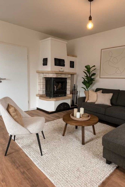 Aufteilung: Küche, Badezimmer, Abstellkammer, 2 große Flure, Schlafzimmer, Kinderzimmer, Wohnstube mit Kamin