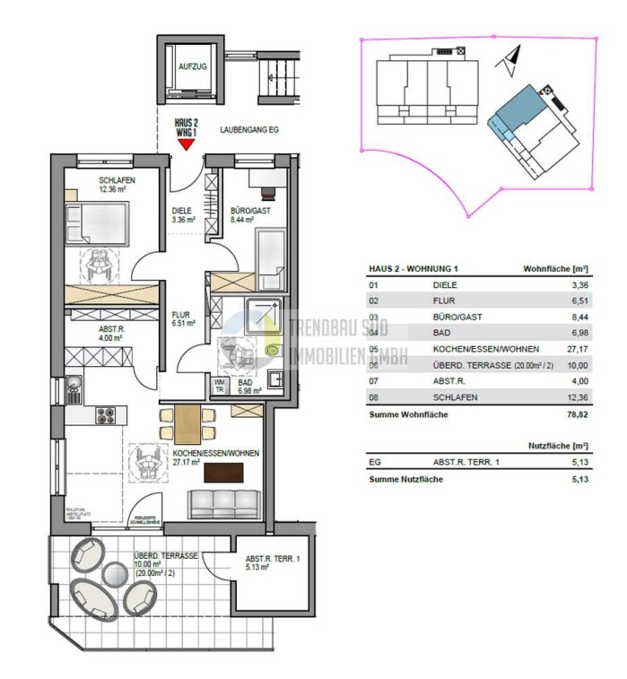 Willkommen in Ihrem neuen Zuhause in Mietingen! Es entstehen zwei moderne Mehrfamilienhäuser mit insgesamt 19 hochwertigen Wohnungen, die durch eine gemeinschaftliche Tiefgaragenanlage miteinander verbunden sind. Die Gebäude sind barrierefrei vom Untergeschoss bis ins Dachgeschoss dank eines Aufzugs, der allen Wohnungen zugänglich ist. Jede Wohnung verfügt über einen eigenen Kellerabstellraum im Untergeschoss, der im Kaufpreis enthalten ist. Zusätzlich zum Erwerb stehen jeweils zwei Stellplätze (Tiefgaragenstellplatz 27.000,- € / Außenstellplatz 9.000,- €) pro Wohnung zur Verfügung, um Ihren Komfort zu maximieren.