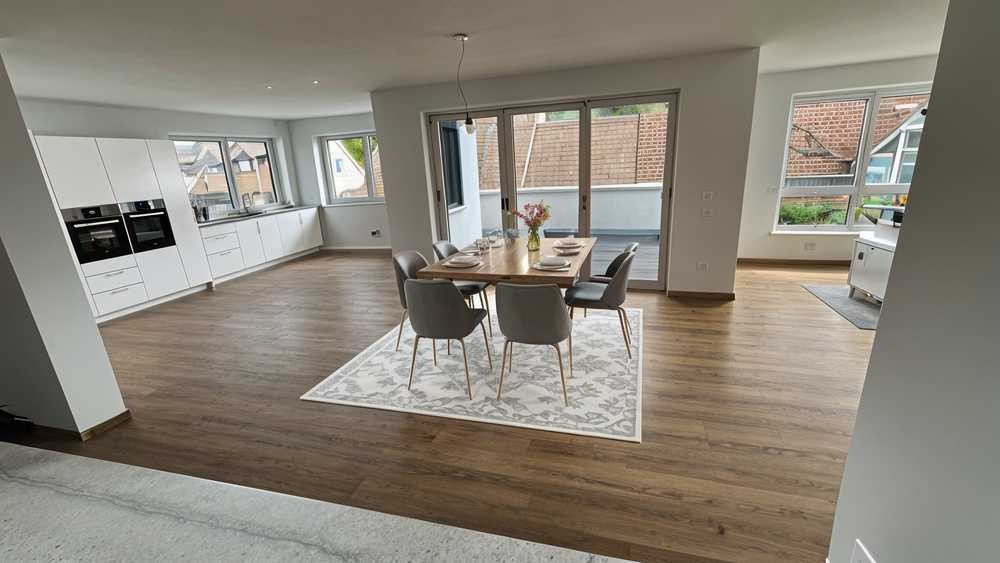 Ab sofort können Sie dieses attraktiv Penthouse erwerben, das durch eine luxuriöse Innenausstattung besticht. Neben 6,5 attraktiven Zimmern zählen zu dem Objekt zwei Badezimmer sowie ein separates Gäste-WC. Die Wohnung ist barrierefrei zugänglich und durch einen Fahrstuhl gelangen Sie bequem direkt in die Wohnung. Besonders hervorzuheben ist, dass es nicht nur einen Balkon mit Weitsicht gibt, sondern Sie eine große Terrassen Ihr eigen nennen können. Ein Kellerraum steht Ihnen außerdem zur Verfügung, sowie ein Waschmaschinenraum und ein Fahrradraum