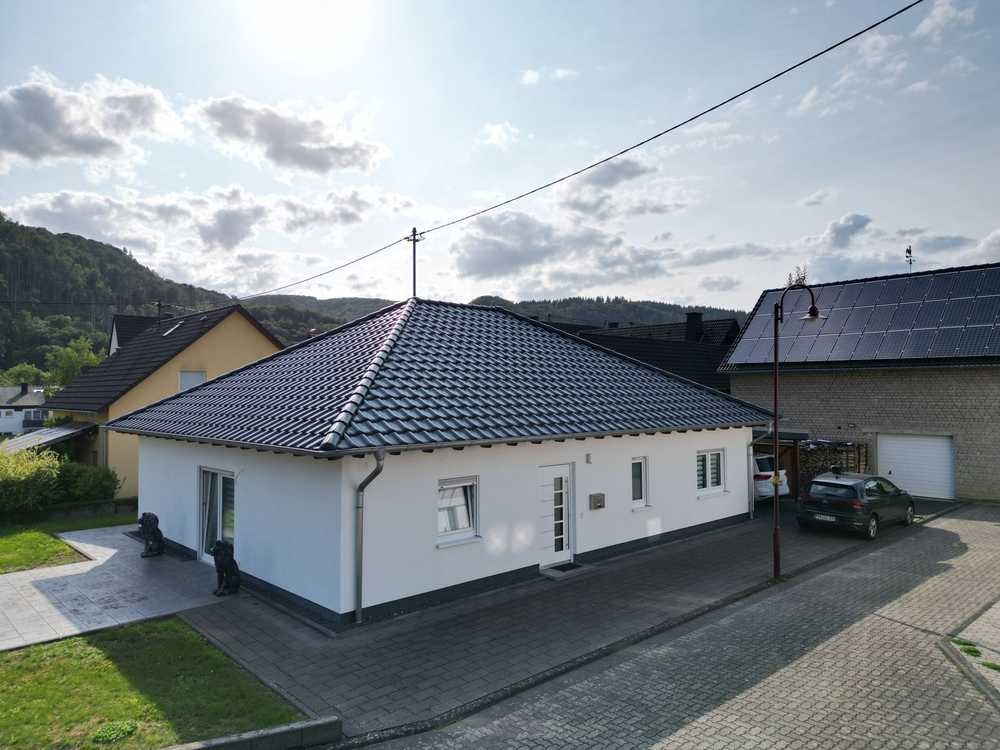 Dieser gepflegte, im Jahr 2018 erbaute Bungalow bietet auf ca. 106 m² Wohnfläche ein komfortables Zuhause für bis zu drei Personen. Das freistehende Einfamilienhaus befindet sich auf einem ca. 395 m² großen, pflegeleicht angelegten Grundstück in ruhiger Wohnlage von Niederbreitbach.