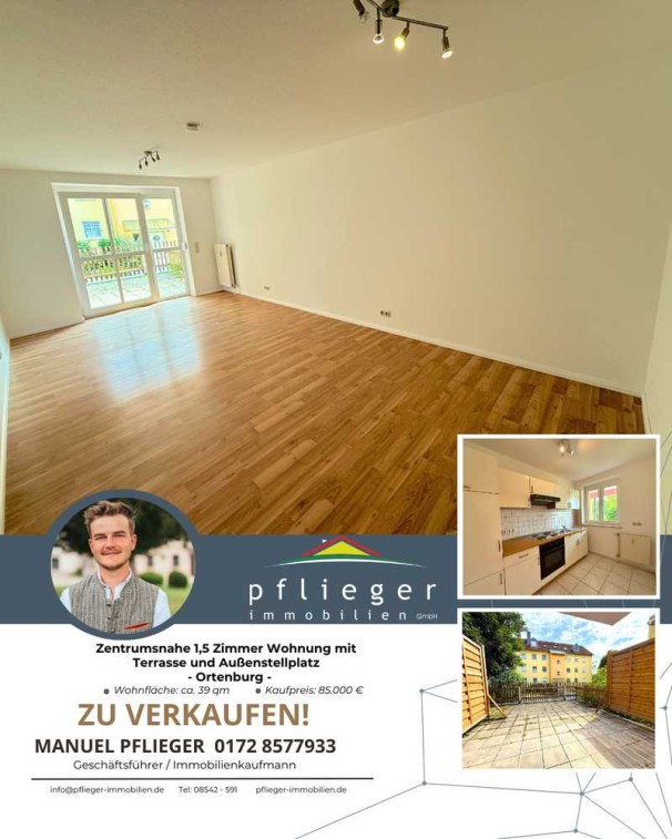 Zentrumsnahe 1,5 Zimmer Wohnung mit Terrasse und Außenstellplatz