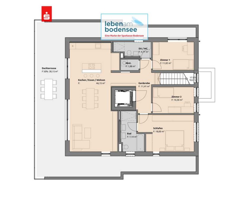 Die Wohnungsgrößen variieren von ca. 75 m² bis 143 m².
