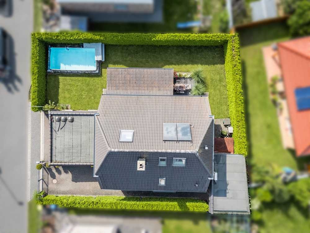 Die Immobilie überzeugt mit einer durchdachten Raumaufteilung, einer modernen Ausstattung und einem liebevoll angelegten Außenbereich. Mit einer Wohnfläche von rund 142 m², verteilt auf 5 Zimmer, darunter 3 Schlafzimmer, bietet es ausreichend Platz für Familien und Paare. Der großzügige Wohn- und Essbereich ist das Herzstück des Hauses; lichtdurchflutet, offen gestaltet und mit einem gemütlichen Kamin, der an kühlen Tagen für angenehme Wärme sorgt. Von hier aus haben Sie den direkten Zugang zu der Terrasse und in den geschmackvoll angelegten Garten, der zum Entspannen und Verweilen einlädt. Hier finden Sie auf einem Grundstück von rund 477 m² nicht nur ausreichend Platz für Familie und Freunde, sondern auch einen eigenen Pool, der im Sommer Erfrischung bietet.