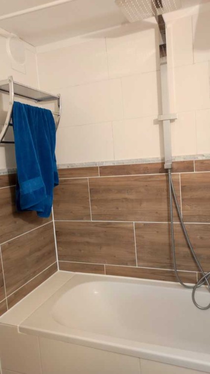 Bad komplett neu saniert: neue Fliesen verlegt, Badewanne ausgetauscht, wc ausgetauscht