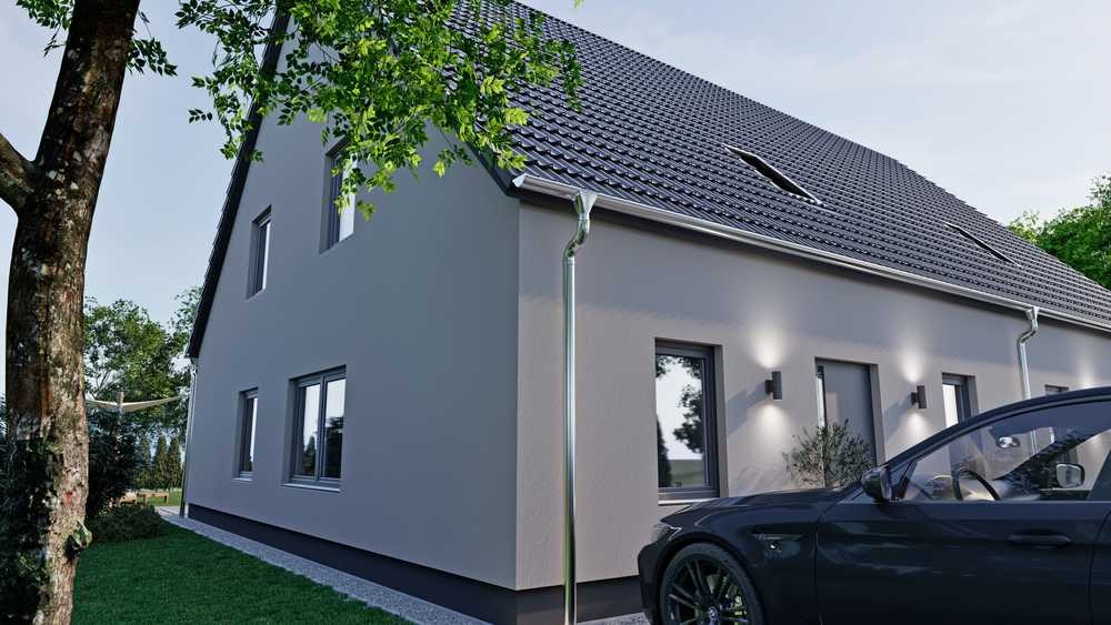 Attraktive Doppelhaushälfte in Planung mit attraktivem Blick ins Grüne.