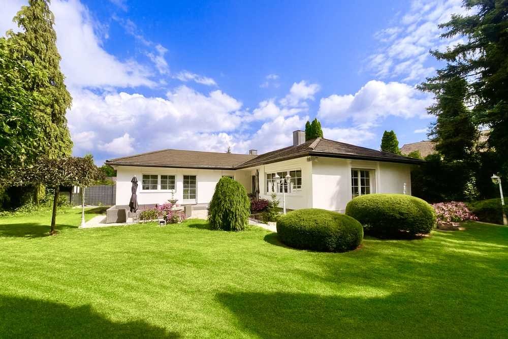 Das ca. 1.000 m² große Grundstück ist parkähnlich angelegt und bietet eine außergewöhnlich private und ruhige Atmosphäre. Ein alter Baumbestand, gepflegte Rasenflächen sowie dichte Bepflanzung schaffen eine grüne Oase mit hohem Erholungswert.