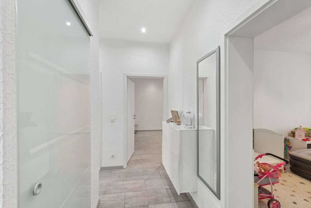 Bereits beim Betreten empfängt Sie ein heller, freundlicher Flur, der den Weg in die einzelnen Räume öffnet. Der großzügige Wohnbereich lädt zu gemütlichen Abenden mit Familie und Freunden ein, während die moderne, offene Gestaltung für ein luftiges Raumgefühl sorgt.
