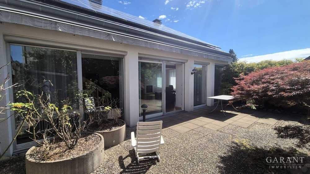 Das 295 qm + 59 qm (Garage/Vorplatz/Wohnweg) große Grundstück besticht durch einen stilvollen Atriumgarten mit Gartenkamingrill, der zu geselligen Stunden im Freien einlädt. Für angenehmen Schatten sorgt die 40 qm große, funkgesteuerte Markise. Zwei hintereinander stehende Garagen führen direkt in den Nebengarten und schließen das Angebot ab.
