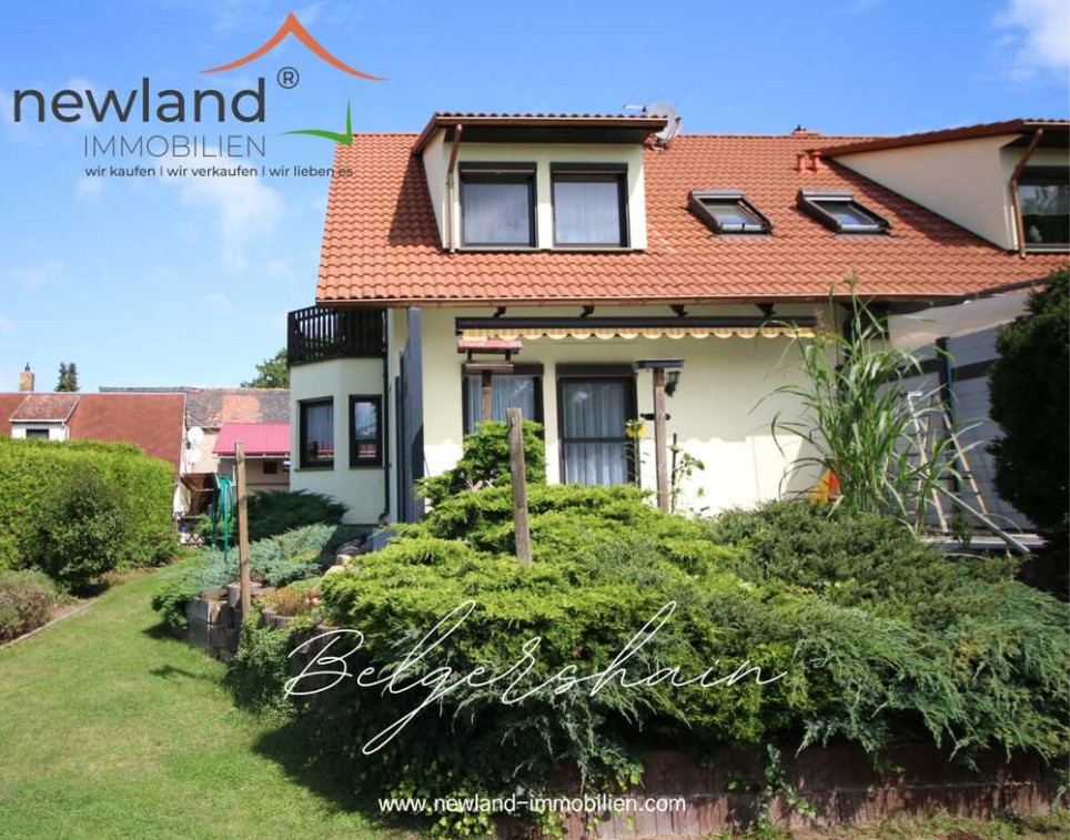 Verlieben-Wohlfühlen-Einziehen, können Sie in dieser ca. 1995 erbauten Doppelhaushälfte in Belgershain mitten in der Neuseenlandschaft von Leipzig. Mit einer Wohnfläche von ca. 102 m² bietet das Haus viel Raum zur Entfaltung – ideal für Paare oder Familien, die auf der Suche nach einer Wohfühloase mit großem Garten sind. Im Erdgeschoss erwartet Sie ein großzügiges, offen gestaltetes Wohnzimmer mit direktem Zugang zur sonnigen Terrasse. Hier können Sie entspannte Stunden im Freien genießen – geschützt durch eine praktische Markise- und den Tag mit einem Sonntagsfrühstück richtig beginnen. Große Fensterflächen sorgen für viel Tageslicht und schaffen eine angenehme Wohnatmosphäre mit ganzem Haus. Das Obergeschoss ist gut geschnitten mit zwei Zimmern und einem Bad. Das Haus ist voll unterkellert und bietet neben viel Stauraum auch einen beheizten Raum, der sich hervorragend als Homeoffice, Hobbyraum oder Gästezimmer nutzen lässt – perfekt für alle, die flexibel bleiben möchten. Ein besonderes Highlight ist das ca. 736 m² große Grundstück. Der liebevoll angelegte und sehr gepflegte Garten lädt zum Verweilen, Spielen oder Gärtnern ein – hier finden Sie Ruhe und Erholung direkt vor der Haustür. Diese Immobilie bietet die perfekte Grundlage, um sich den Traum vom eigenen Haus zu erfüllen. Lediglich kleinere Renovierungsarbeiten müssen gemacht werden, um die Doppelhaushälfte im modernen Glanz erstrahlen zu lassen.