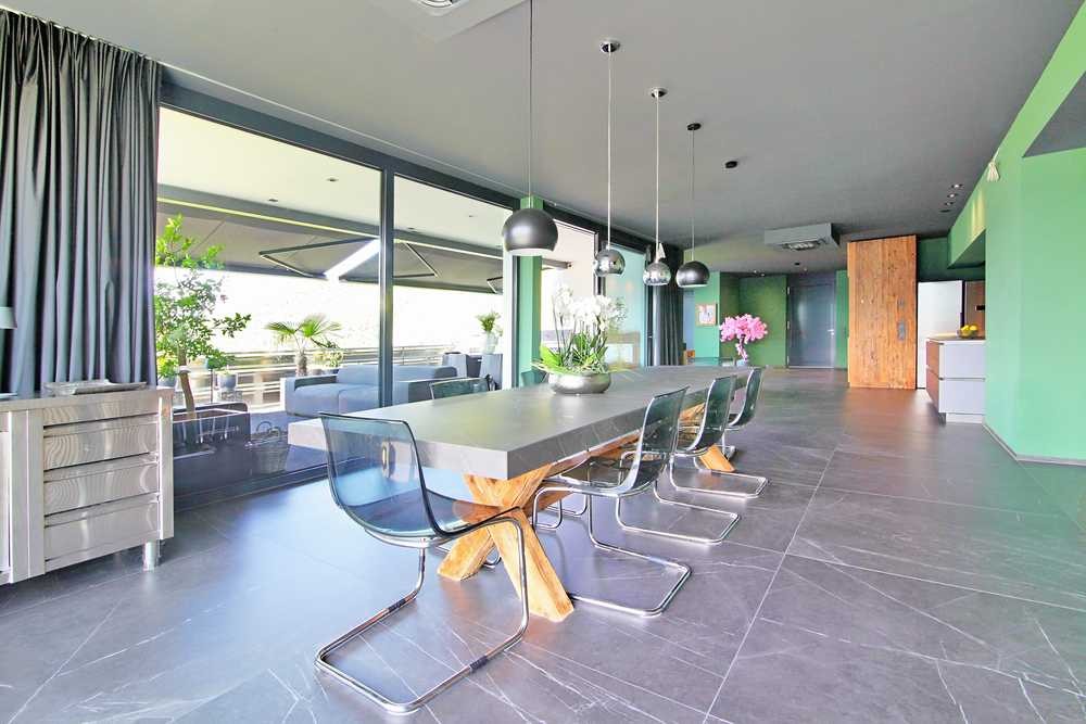 Die rund 320 m² große Wohnfläche verteilt sich auf einer Ebene und bietet sechs großzügige Zimmer mit einem durchdachten Grundriss. Die Kombination aus offenen Wohnbereichen, edlen Bodenbelägen und Akzenten aus Südtiroler Altholz verleiht der Wohnung eine besondere Wohnatmosphäre mit hohem ästhetischem Anspruch.