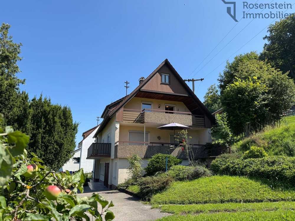 Neben dem Blick über Heubach auf der einen Seite, steht Ihnen hinter dem Haus ein riesiger Garten mit ca 1.200 m², ein geschütztes Plätzchen als Terrasse für entspannte Ruheaufenthalte bereit.