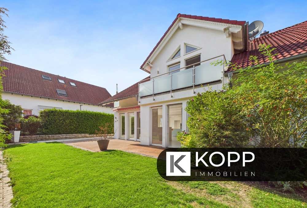 Der Außenbereich lädt mit einer großen Terrasse und gepflegtem Garten zu erholsamen Stunden im Freien ein. Die ruhige Lage in einem gewachsenen Wohngebiet bietet Privatsphäre, während die hervorragende Infrastruktur und Verkehrsanbindung kurze Wege in die umliegenden Städte ermöglichen.