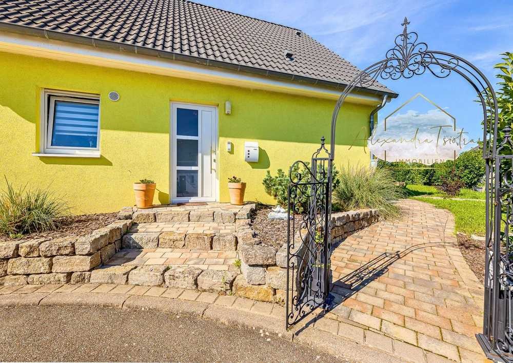 Die moderne Gestaltung und die großen Fensterflächen schaffen ein lichtdurchflutetes Ambiente mit direktem Zugang zur sonnigen Terrasse und dem gepflegten Garten.