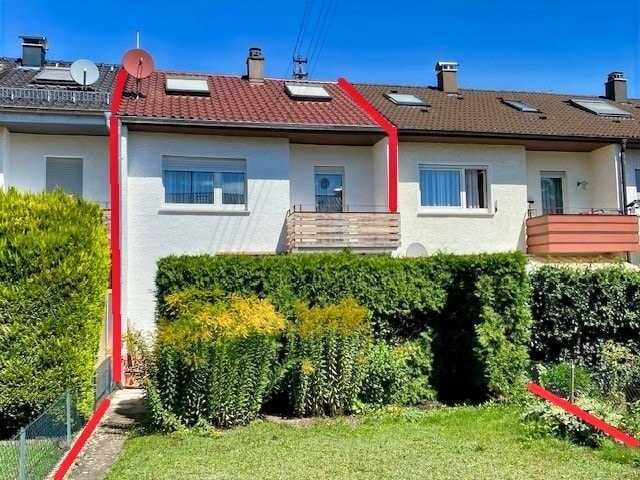 Der Garten ist über die Terrasse und durch eine Außentreppe erreichbar. Eine Garage mit Stellplatz davor rundet das Angebot ab.