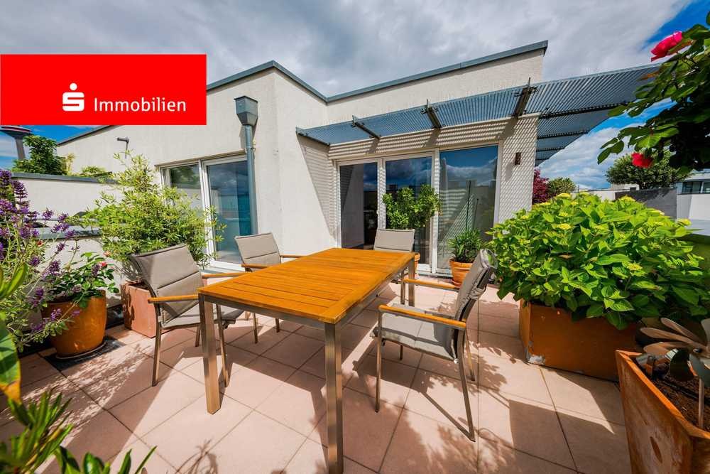 Angeboten wird eine außergewöhnliche Penthouse-Maisonette-Wohnung. Die großzügig geschnittene Wohnung besteht aus insgesamt fünf Zimmern, Küche, sowie drei Bädern und erfüllt damit modernste Ansprüche an Komfort und Raumgefühl. Die schicke Eigentumswohnung erstreckt sich über zwei Etagen, die bequem per Aufzug erreichbar sind. Im oberen Geschoss befindet sich der repräsentative Wohn- und Essbereich sowie eine nach Süden ausgerichtete Dachterrasse mit Blick auf die Frankfurter Skyline.